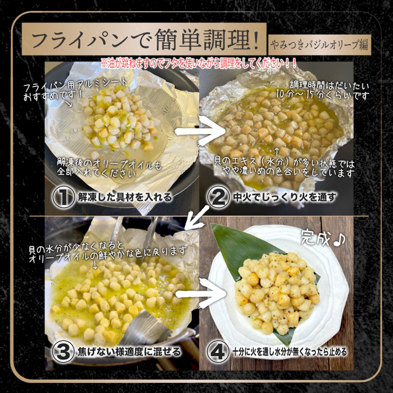 この商品は、フライパンひとつで簡単に調理ができるため、忙しい日々の中でも手軽に美味しい食事を楽しめます。火入れの過程で魅力的な香りが広がり、食卓を彩ること間違いなしです!